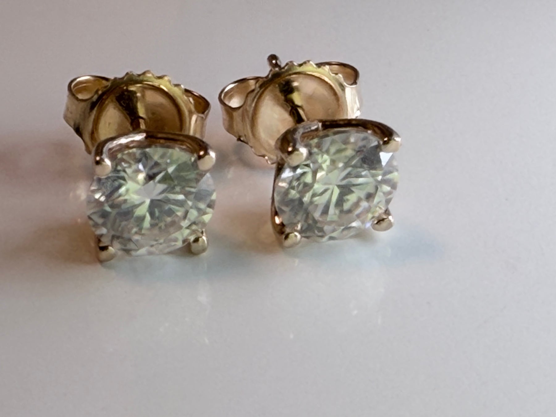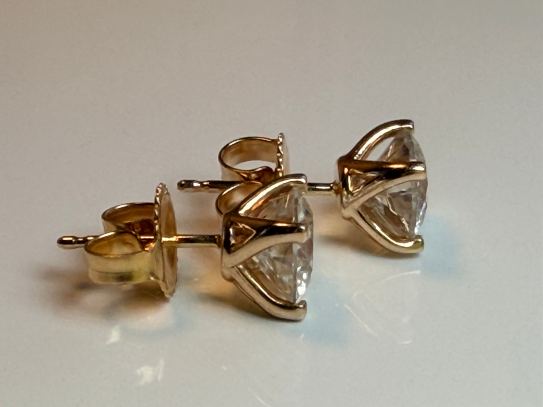 4CTW - VVS1 Moissanite Studs, 14k Gold