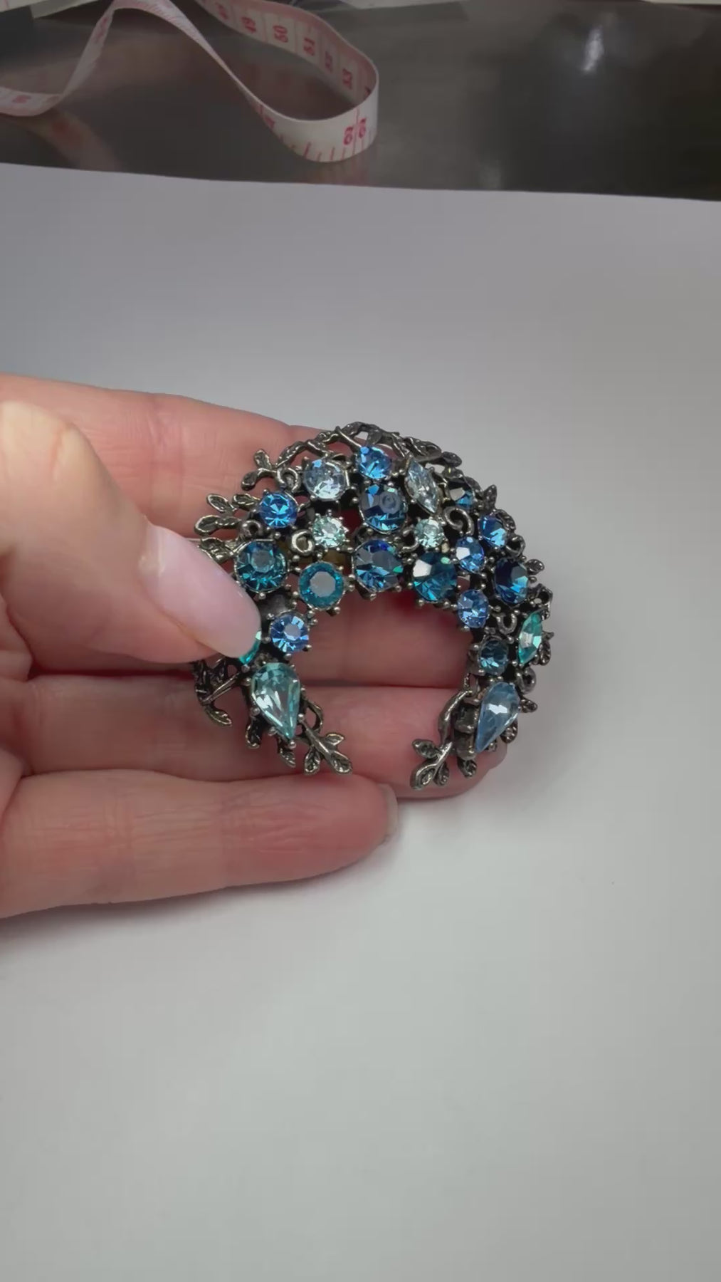 *Navy, Aqua, teal, bright blue - arranged on a wreath style brooch