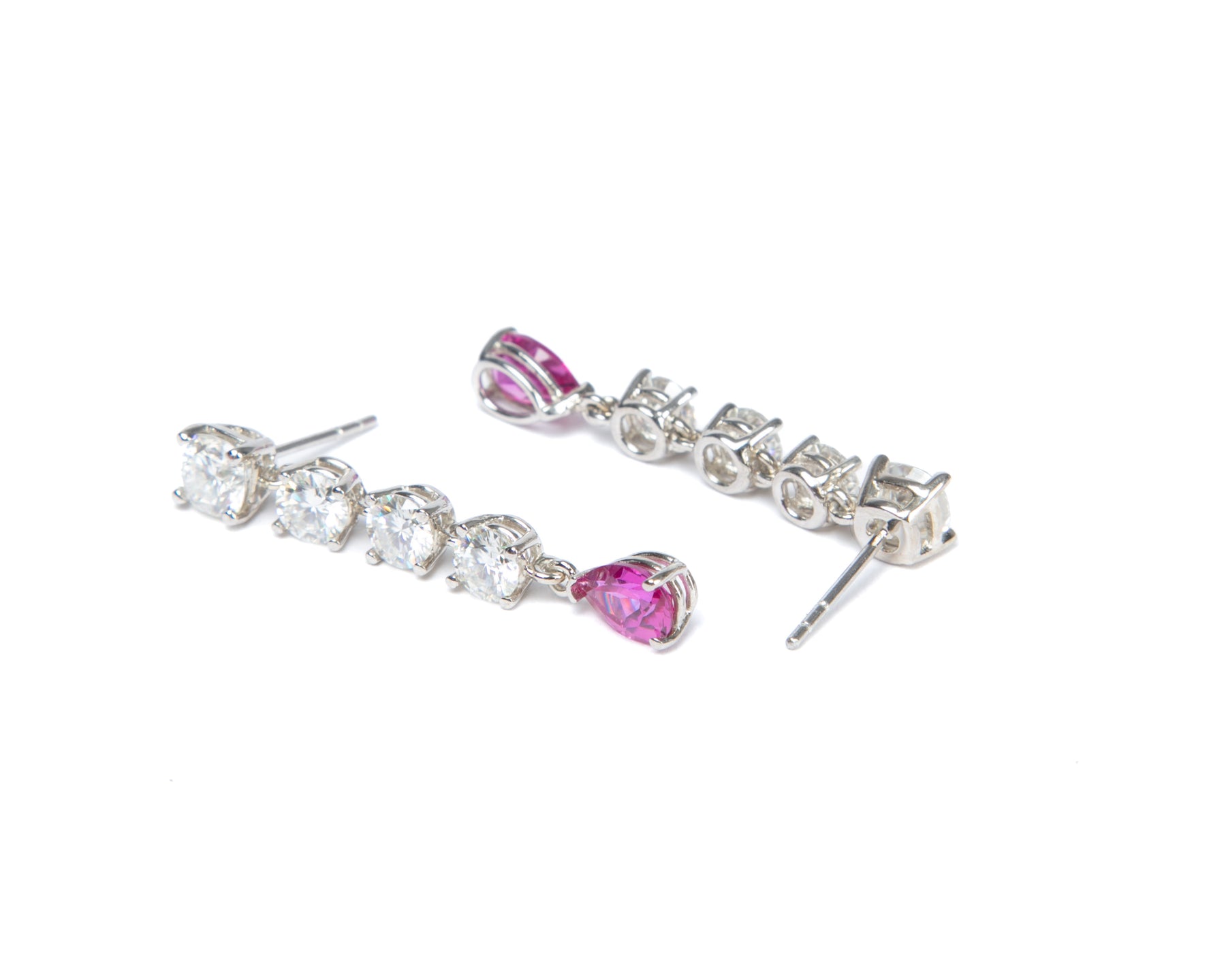 Glamorous Drop Earrings - Moissanite and Lab Pink Sapphires