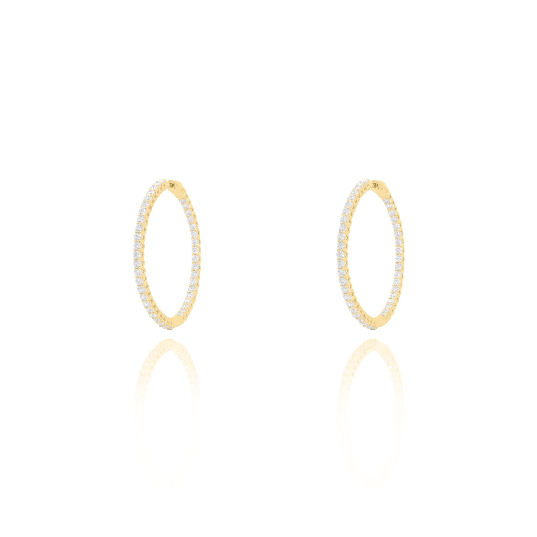 Stunning Inside-Out Gold Vermeil (925 sterling silver base)  that deliver a true luxury look. These 35mm hoops make a refined statement with brilliance from every angle, giving you a bold yet sophisticated finish for every season. Each pair is crafted with a stunning Gold Vermeil Plate and secured with a firm push-clasp closure—an elevated detail that ensures comfort and confidence throughout the day. True to our quality and craftsmanship these earrings are made from sterling silver not brass or stainless steel.
