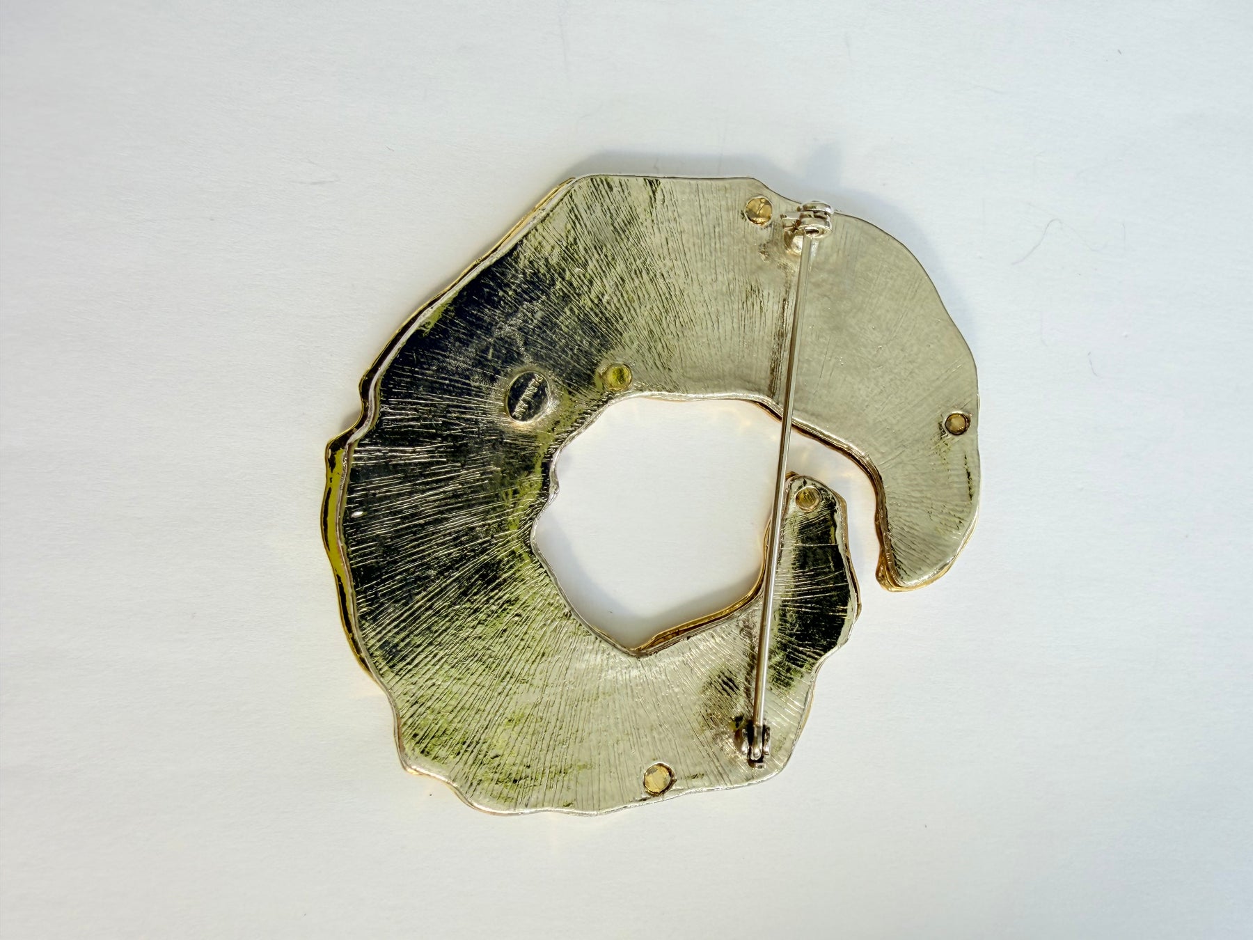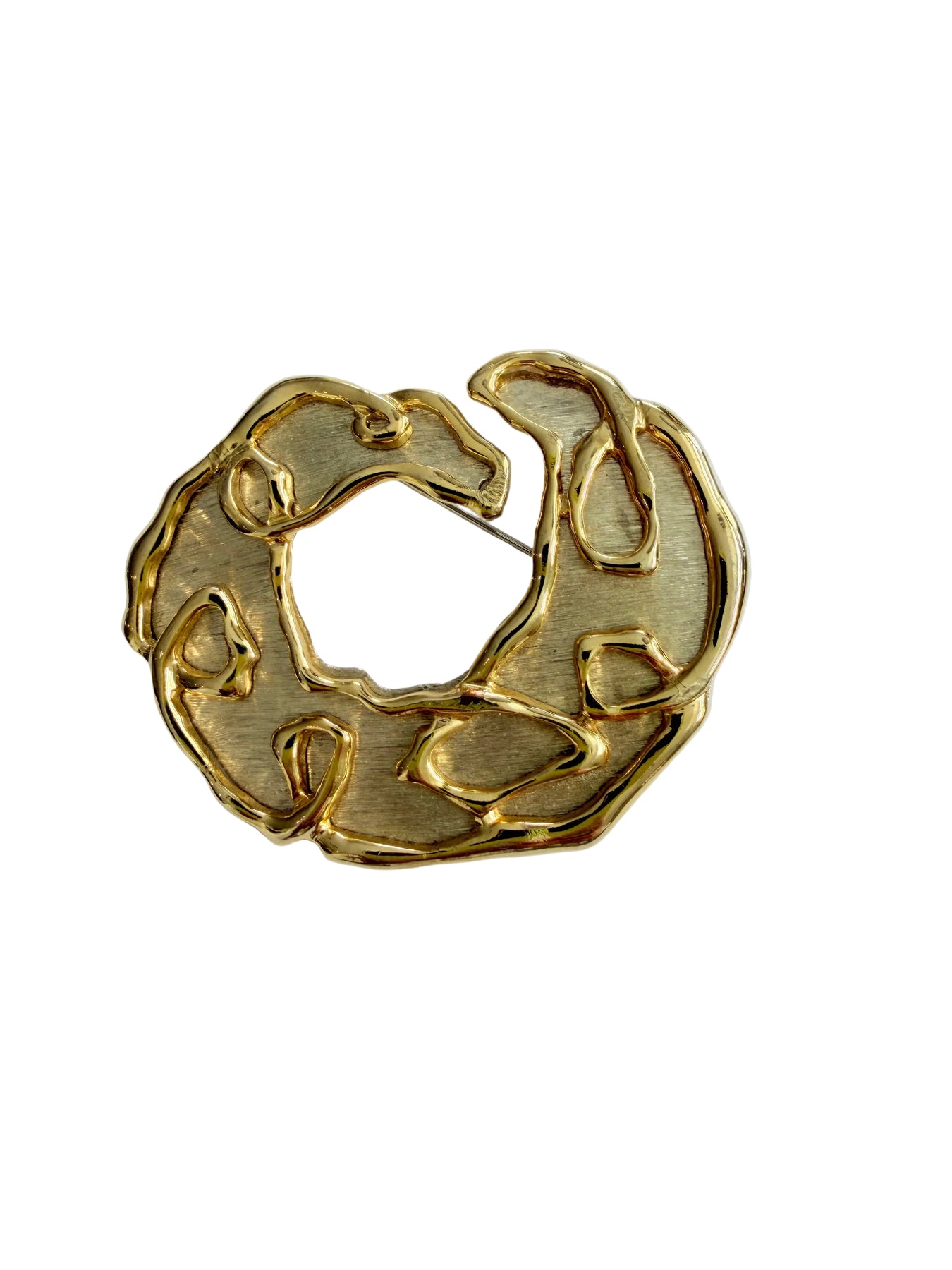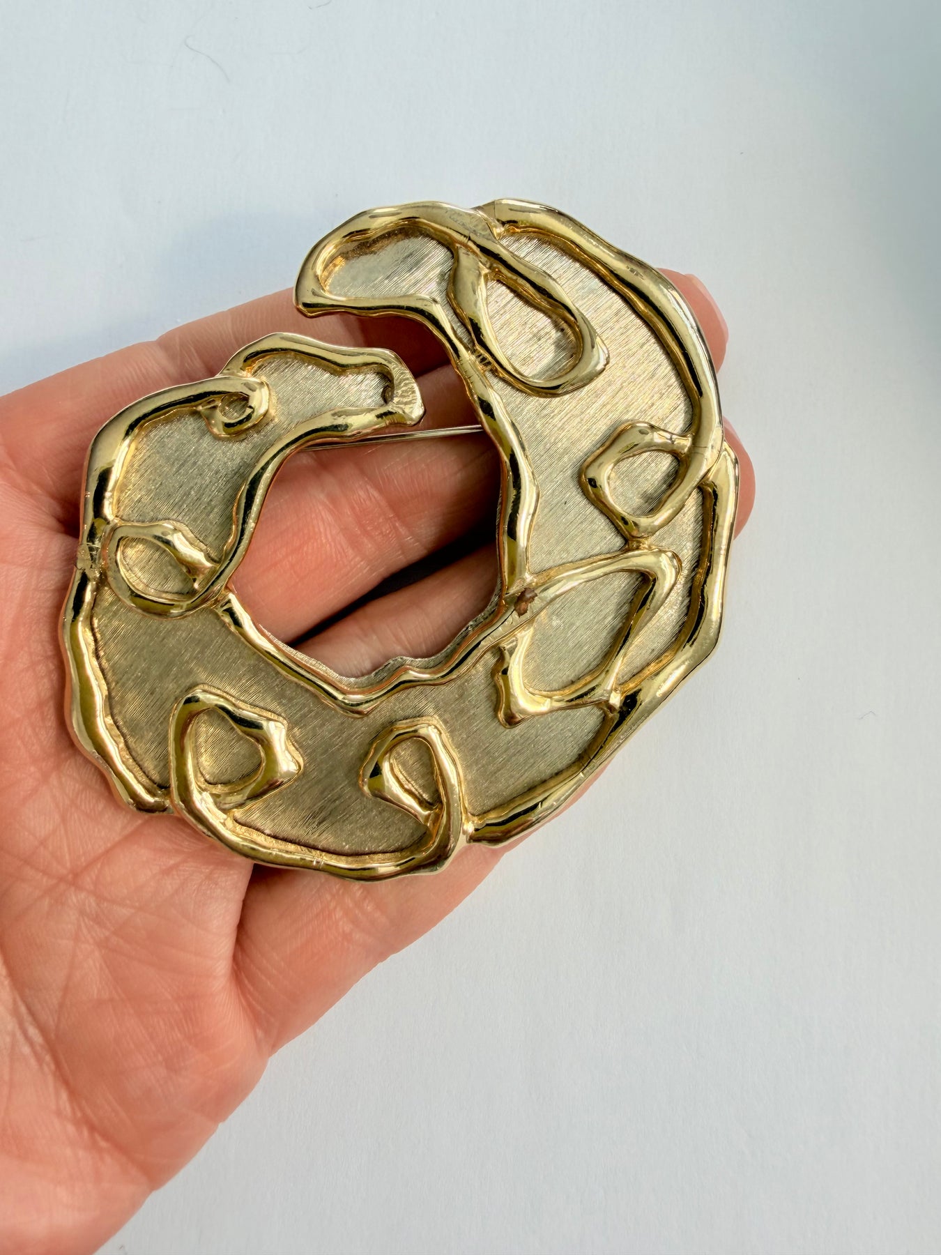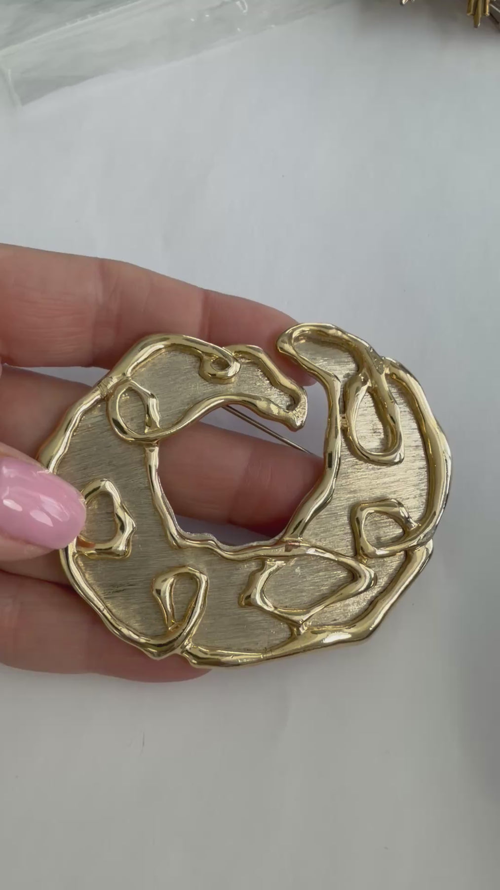 Oversized mixed tones of gold (brushed and matte). Made by Parklane in 1955 by Arthur and Shirley LeVin. It is exceptional quality for costume jewelry!
