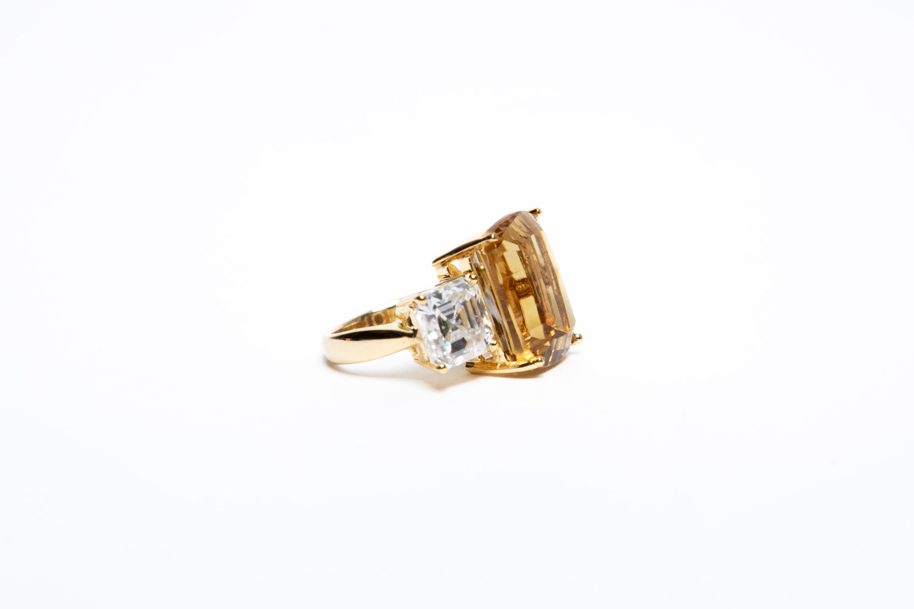 Citrine & Moissanite Solid Gold Cocktail Ring