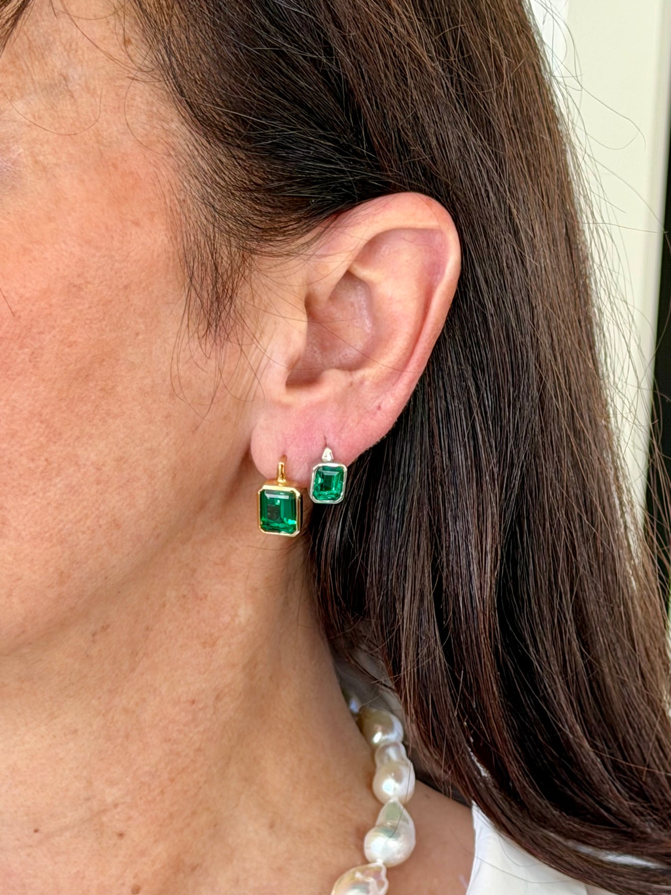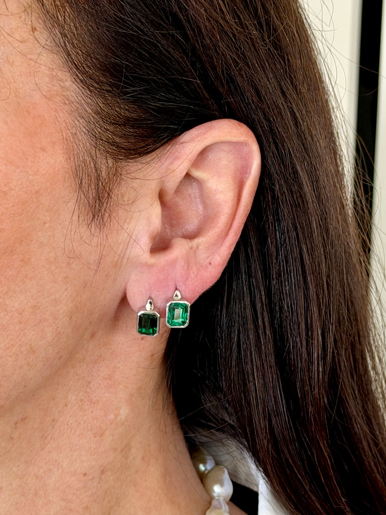 Lab emerald stud earrings featuring exceptional cut and clarity, handmade in our Toronto studio. Available in two striking colourways—classic Colombian green or deep Zambian green—each bezel set with fully finished backs, showcasing our signature craftsmanship. A true show-stopping pair designed for everyday luxury. Lever Back design for security. Simple push up the post to open and to close listen for the click.