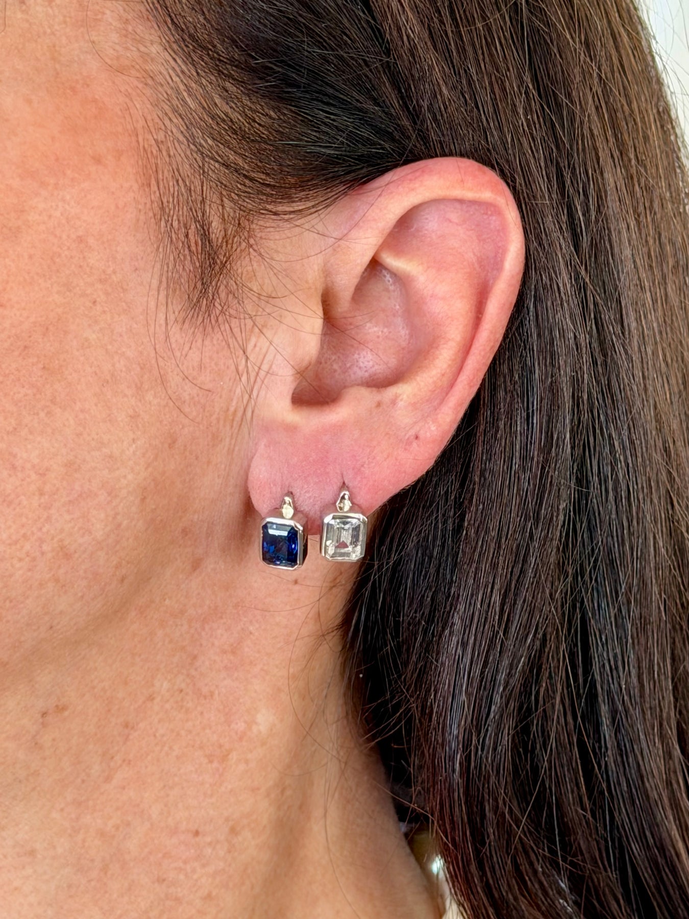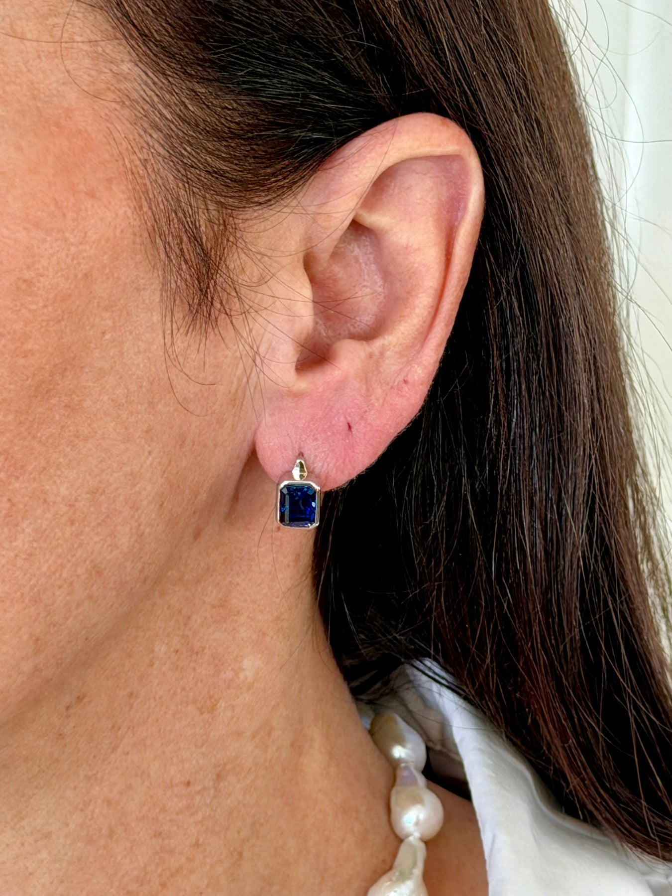 Lab Sapphire stud earrings featuring exceptional cut and clarity, handmade in our Toronto studio. Bezel set with fully finished backs, showcasing our signature craftsmanship. A true show-stopping pair designed for everyday luxury. Lever Back design for security. Simple push up the post to open and to close listen for the click.