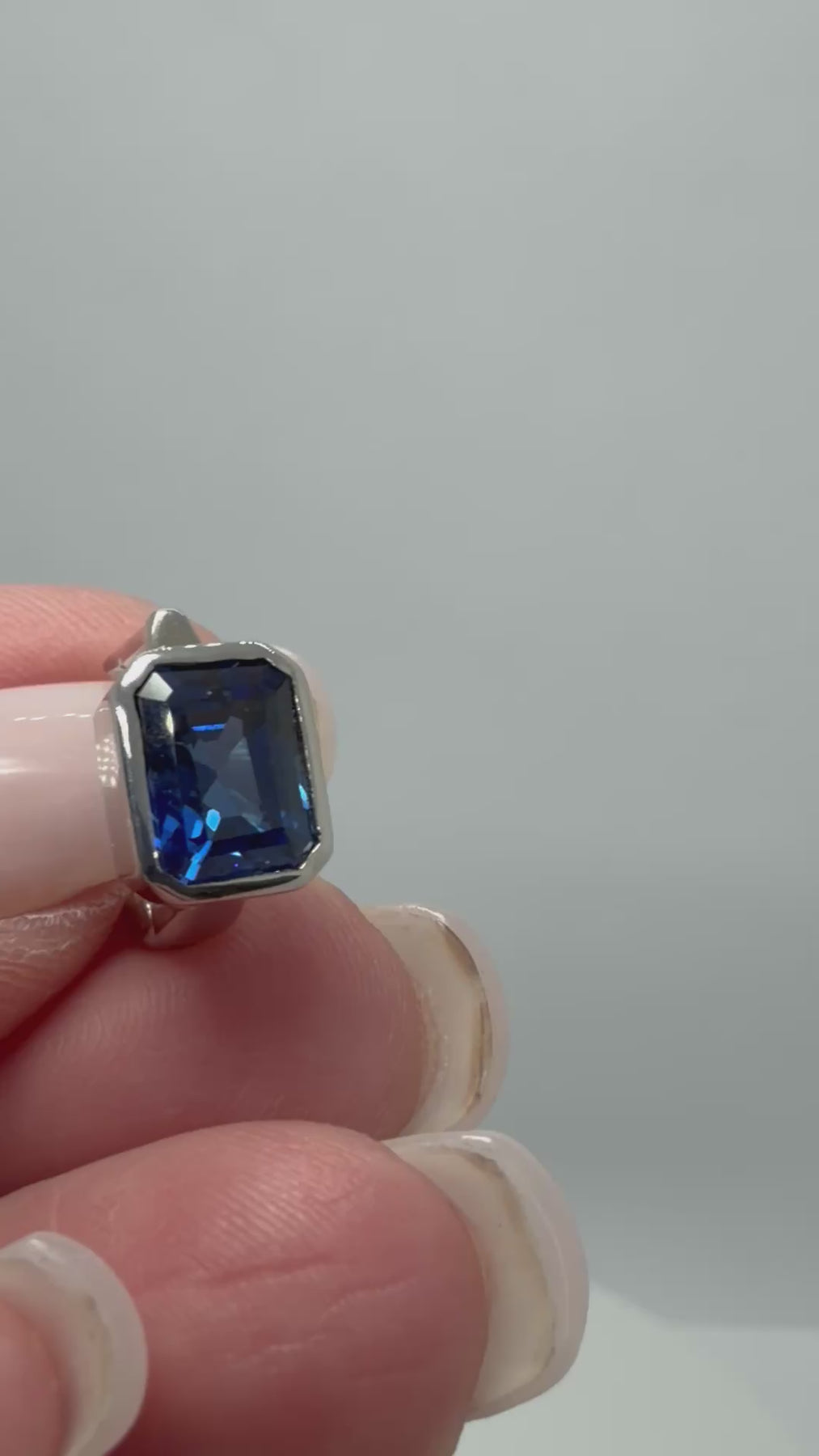 Stone: Lab Sapphire - Rhodium Plated for that White Gold Finish.