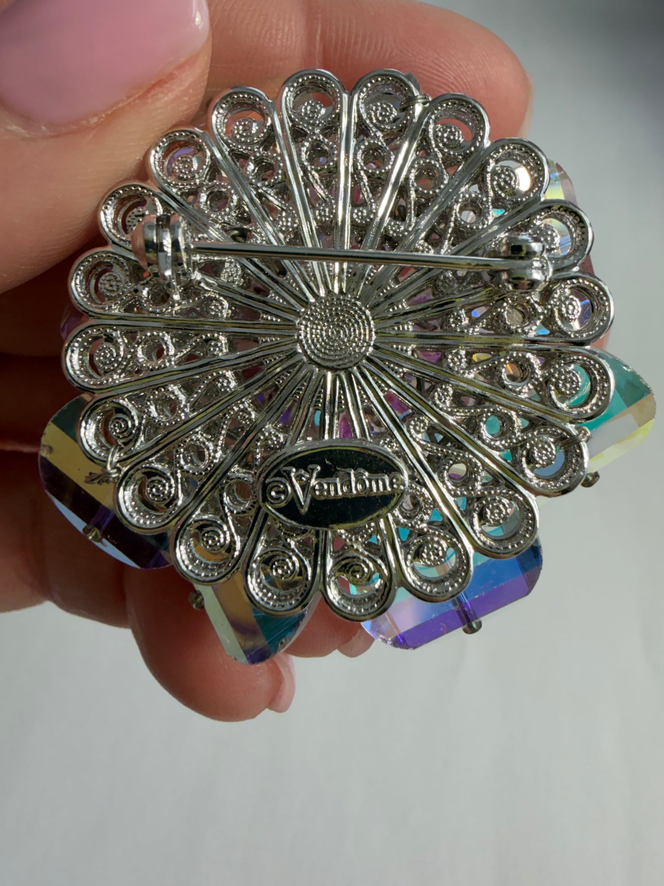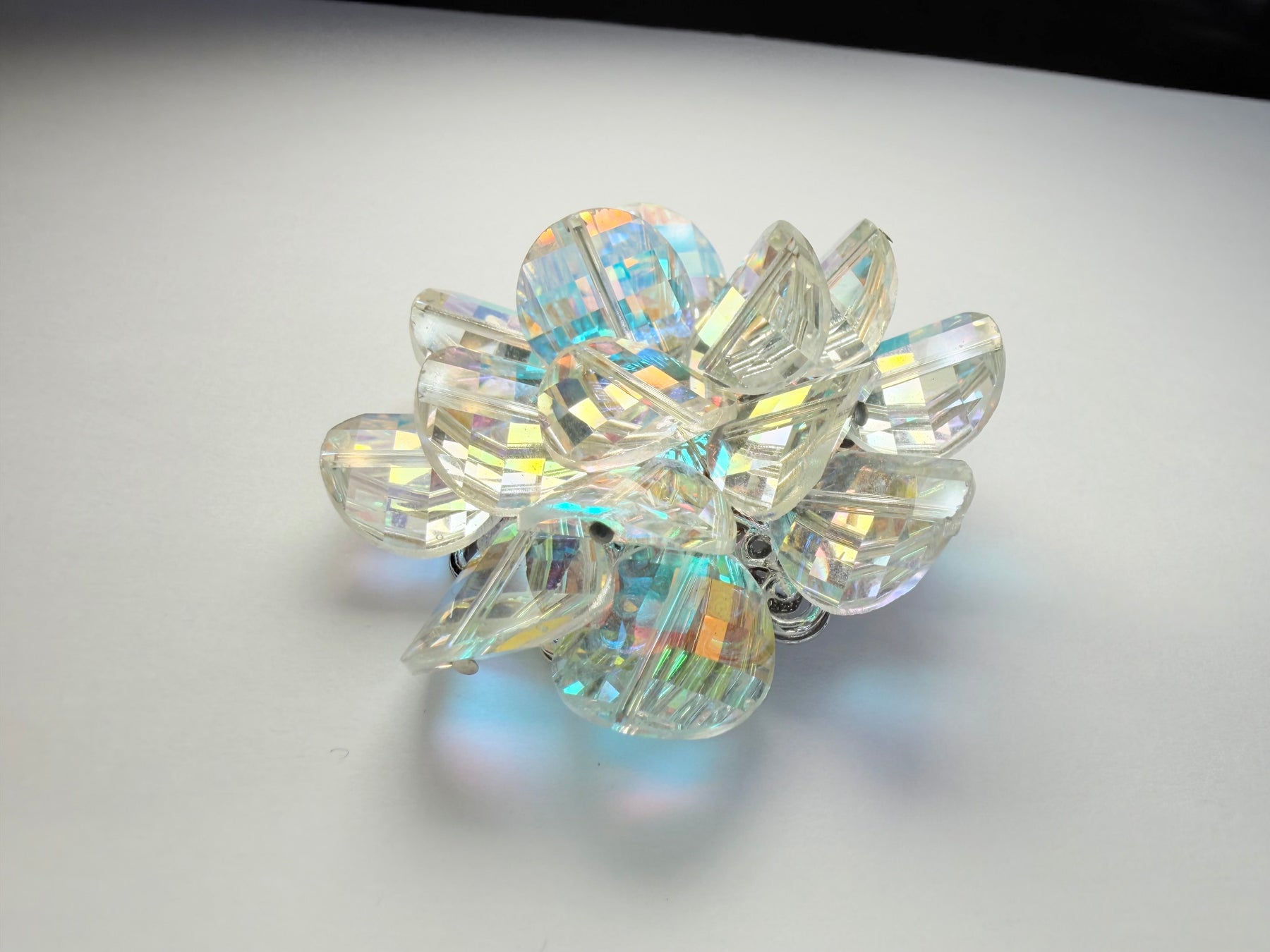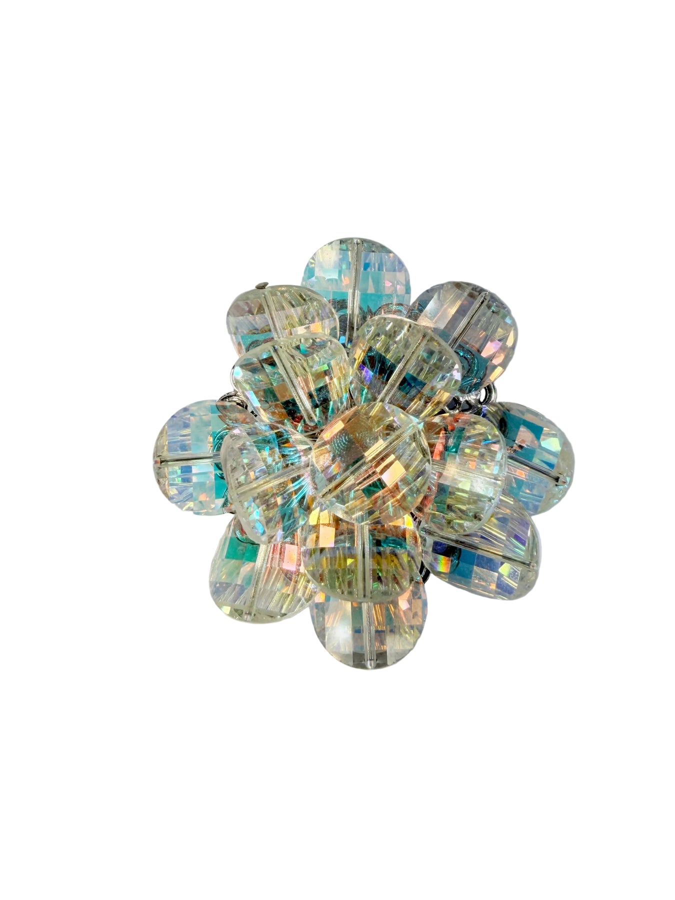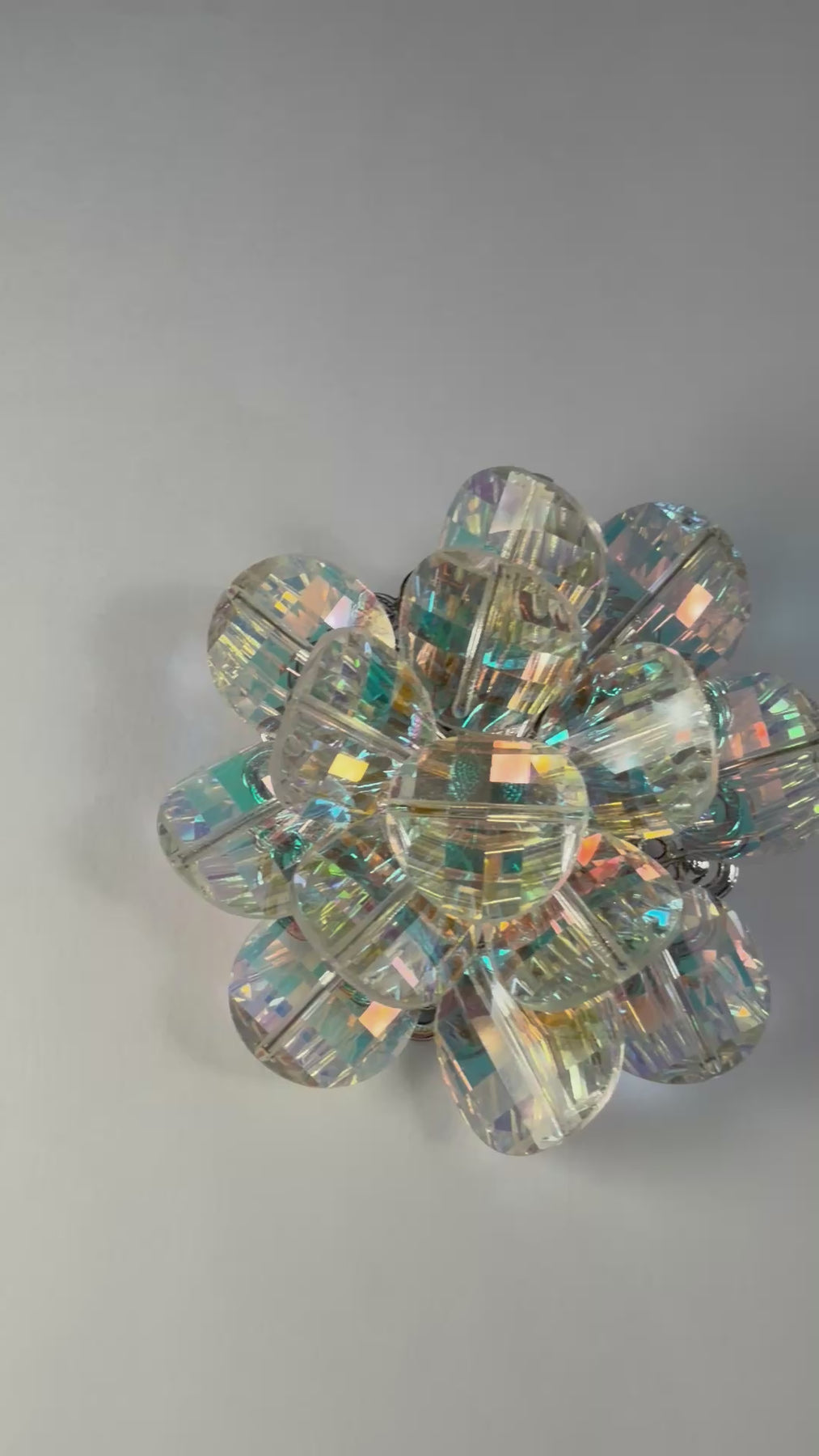 *Iridescent Crystal flower with a stainless steel rhodium plated back